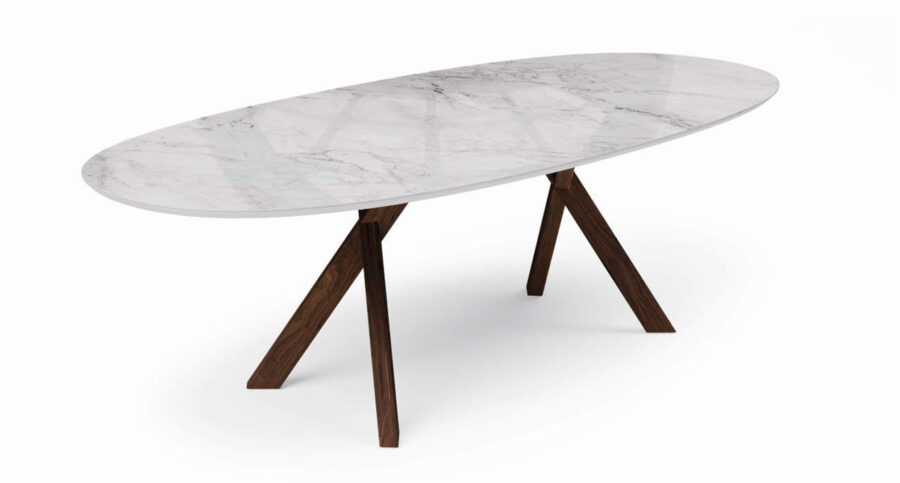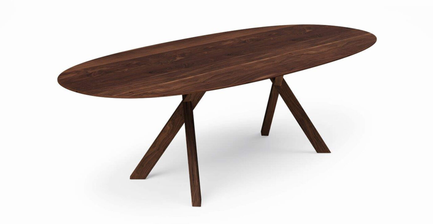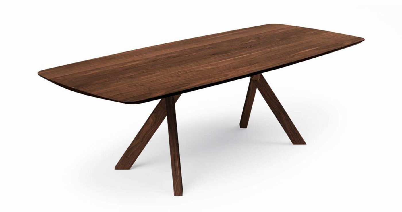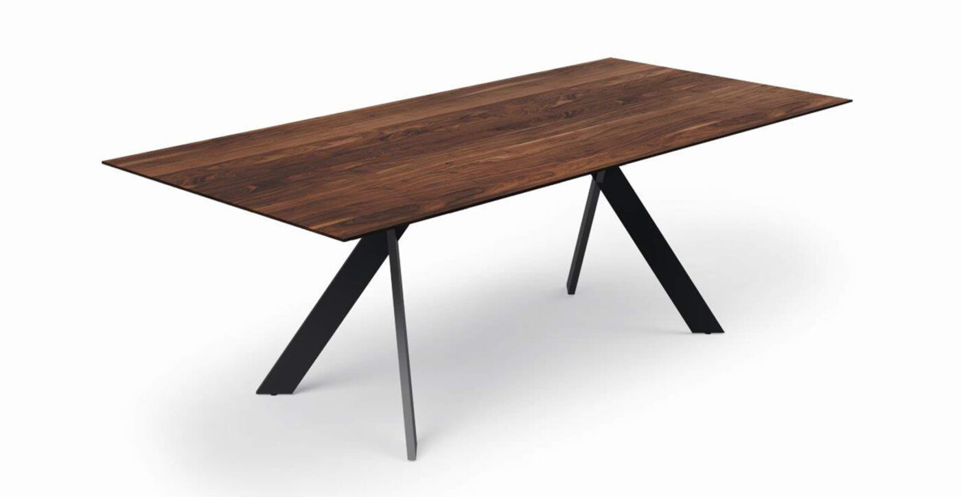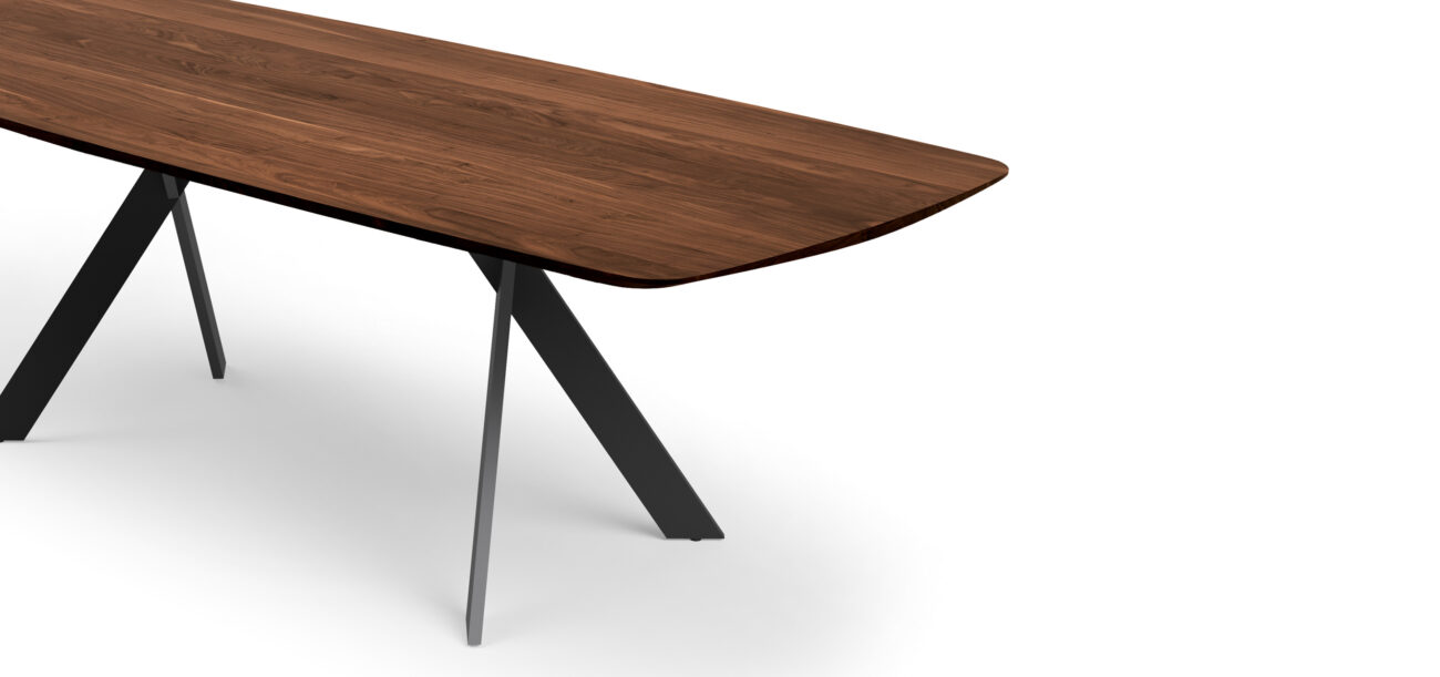 The Torino table is a masterpiece of craftsmanship and style. Its beautiful aesthetics and the refined solution of the table legs make it an impressive addition to any room. Made of solid oak or walnut or the solid wood of your choice. As beautiful as nature created it.