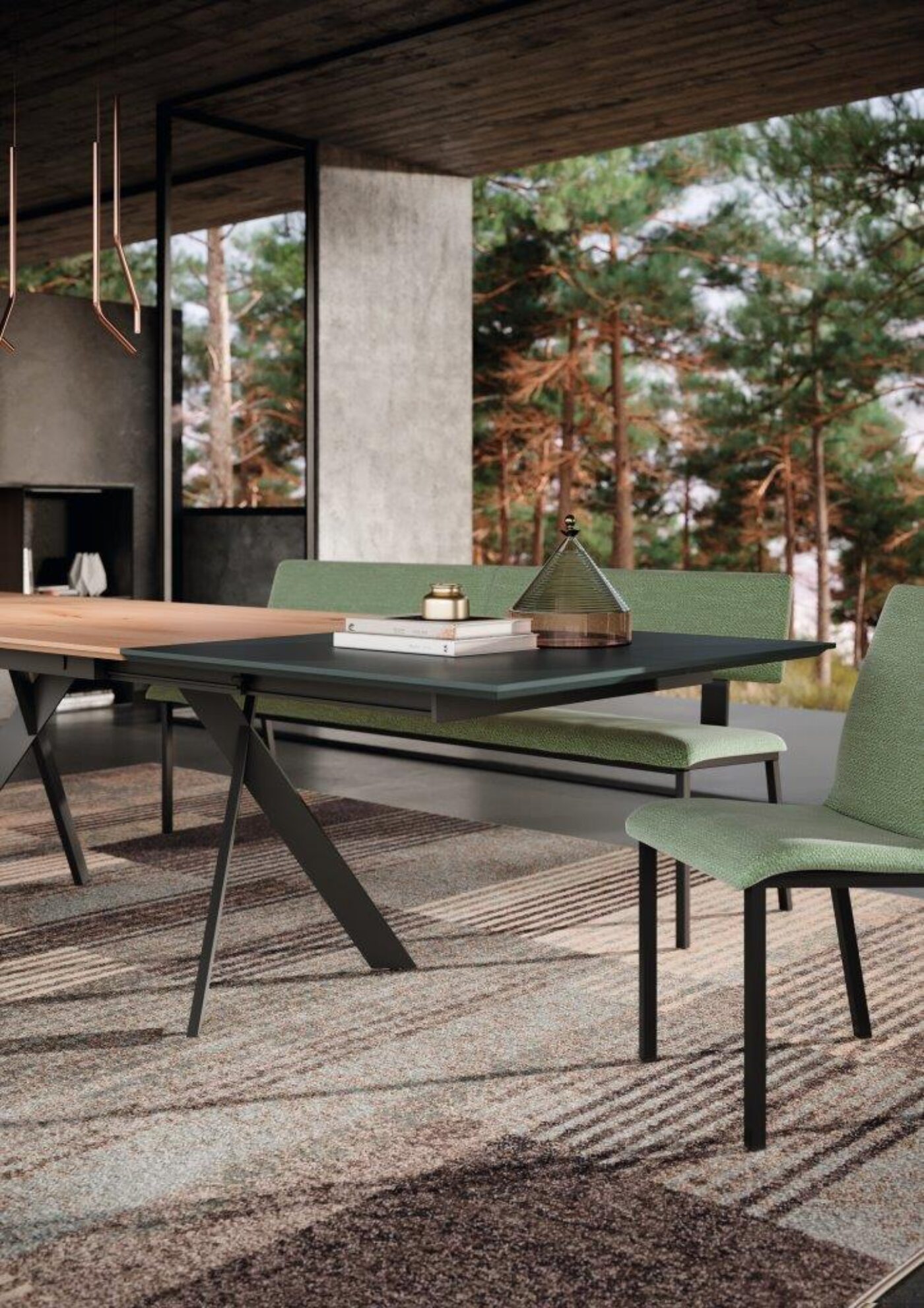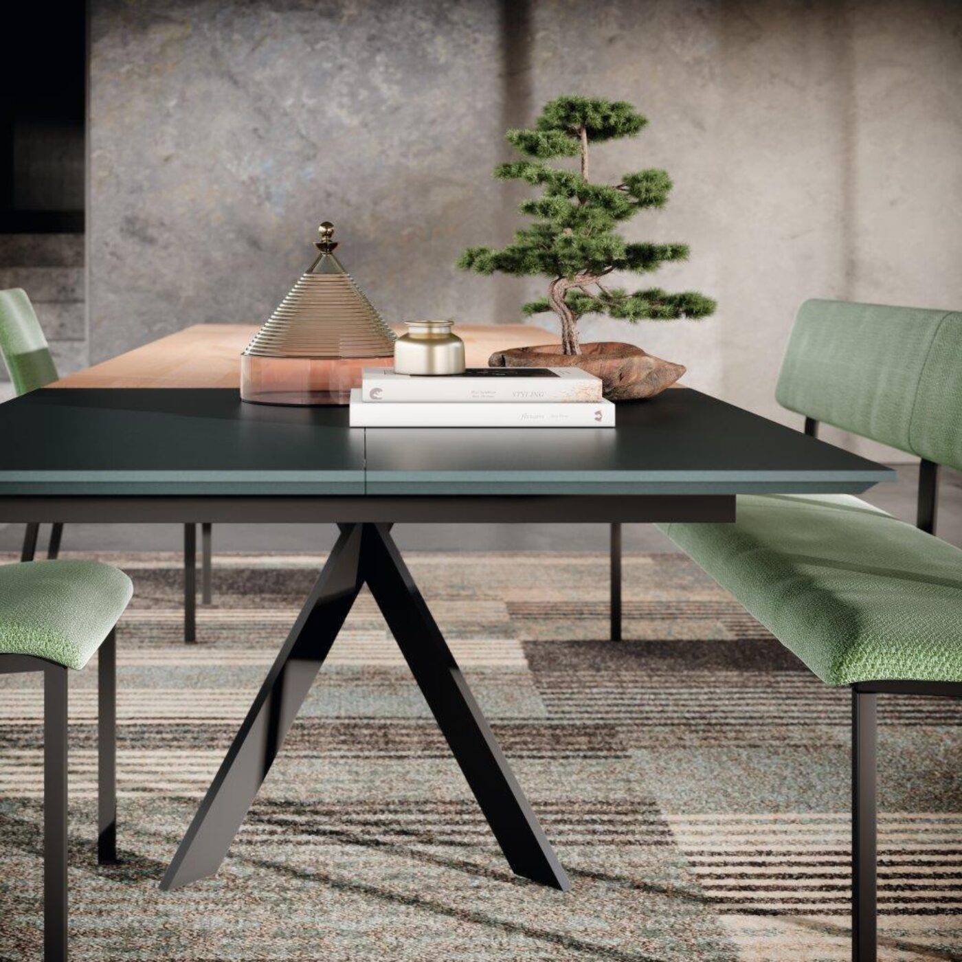 The optional synchronous extension extends the table by a full 100cm. In both the fixed and extendable versions, this table is a fine example of good taste and attention to detail.